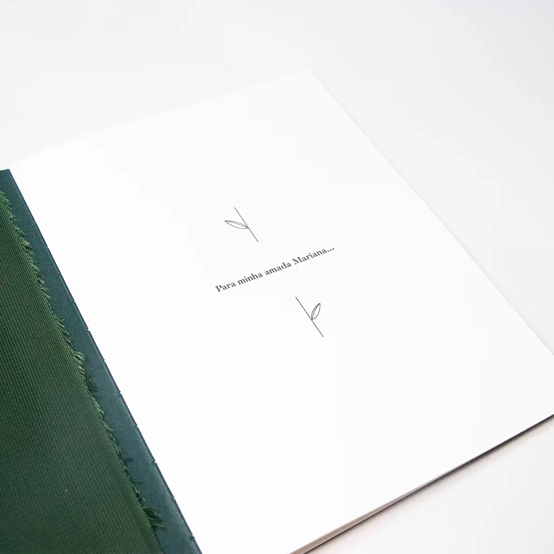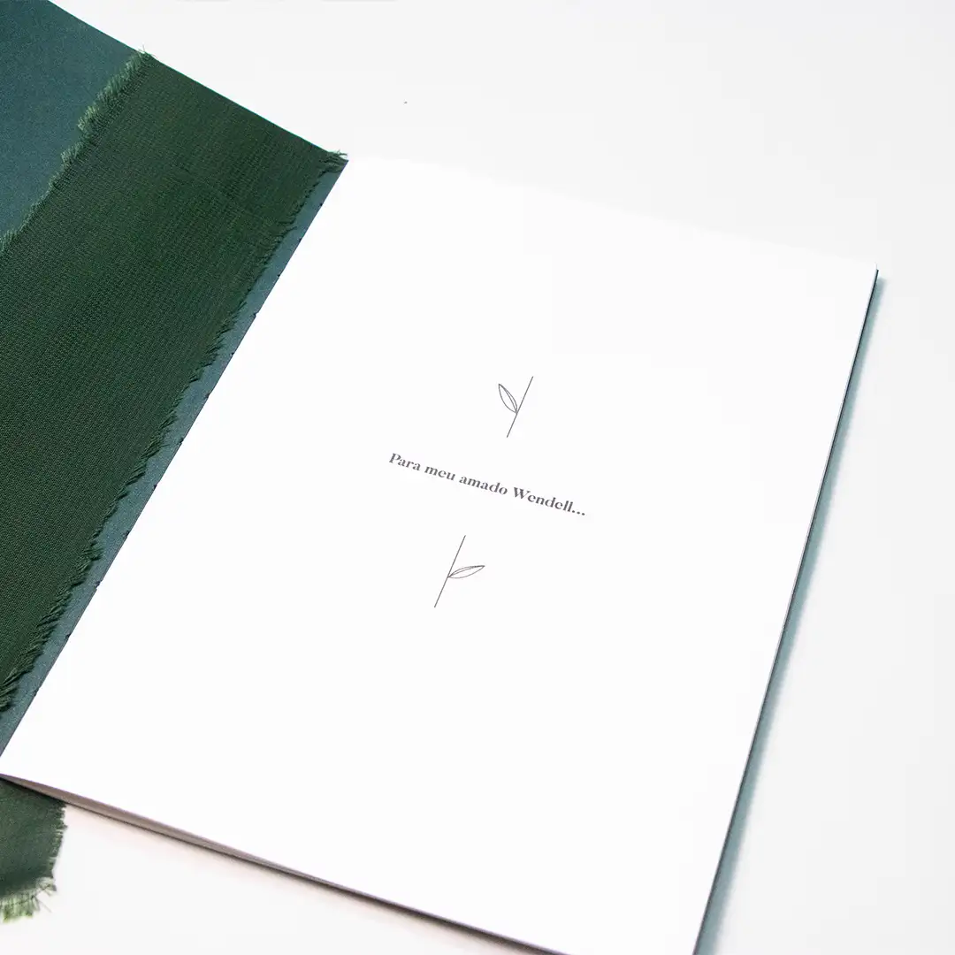 O Caderno de Votos – Petrim Musgo reforça a beleza da sua cerimônia e torna o ritual dos votos ainda mais íntimo. Com ele, você expressa a profundidade do seu amor com mais presença, estilo e significado. Cada página destaca sua história e cria uma memória física que acompanha o casal por toda a vida.