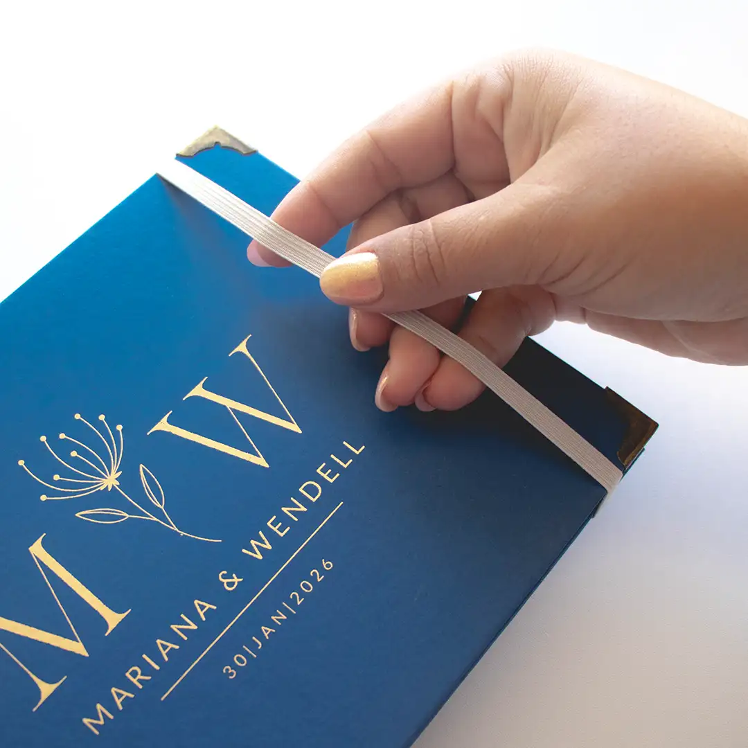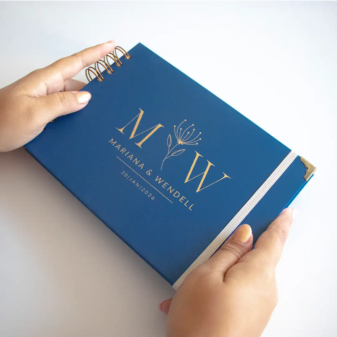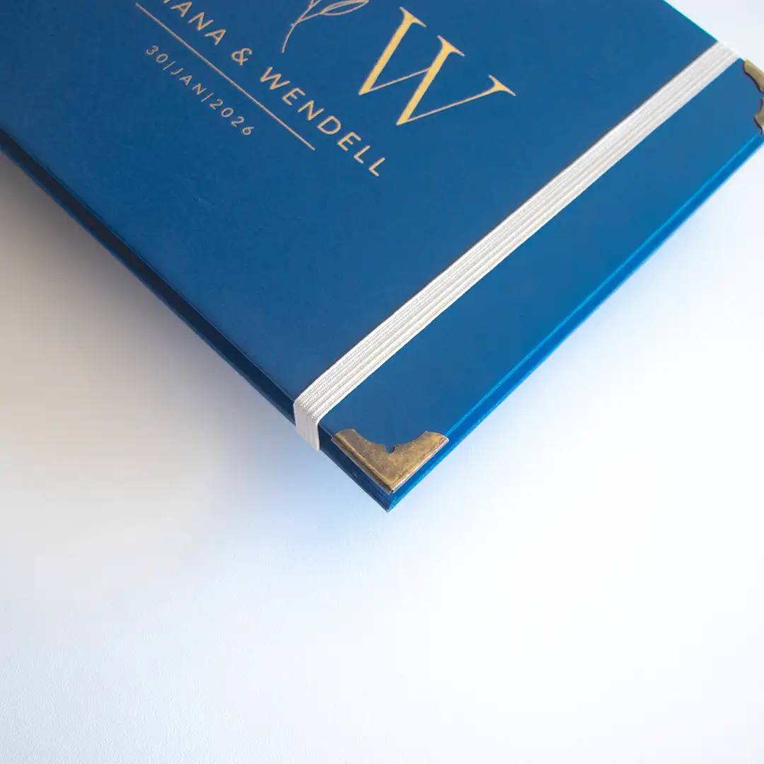 O design une capa firme, metais envelhecidos e acabamento preciso. Isso traz mais charme e cria um livro durável. O Livro para Fotos e Mensagens de Casamento – Lóris Lazuli celebra a história dos noivos e transforma mensagens e imagens em memórias que ganham vida.
